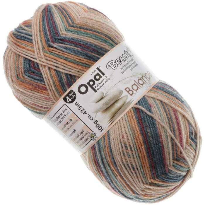 Opal Beauty Balance is een 4-draads garen met edelweissextract en vitamine E. 1 bol is goed voor 1 paar sokken (t/m maat 44).